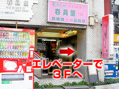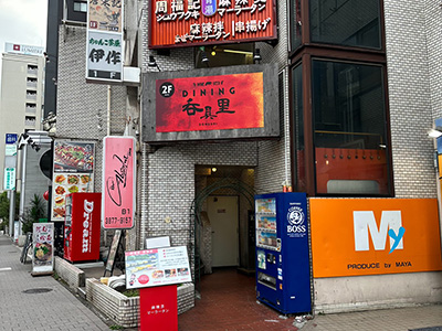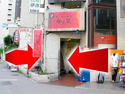 飲食店(呑具里)の看板の下からお入りいただきます。