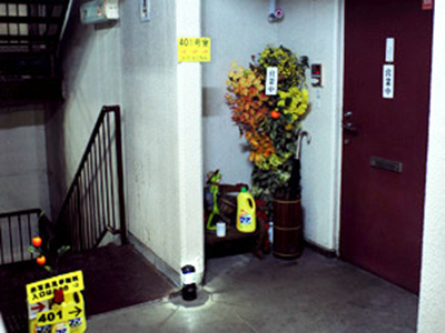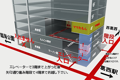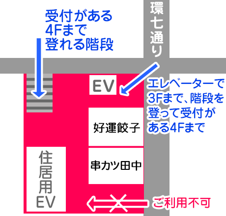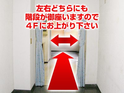 左右どちらにも階段が御座いますので4Fにお上がり下さい。